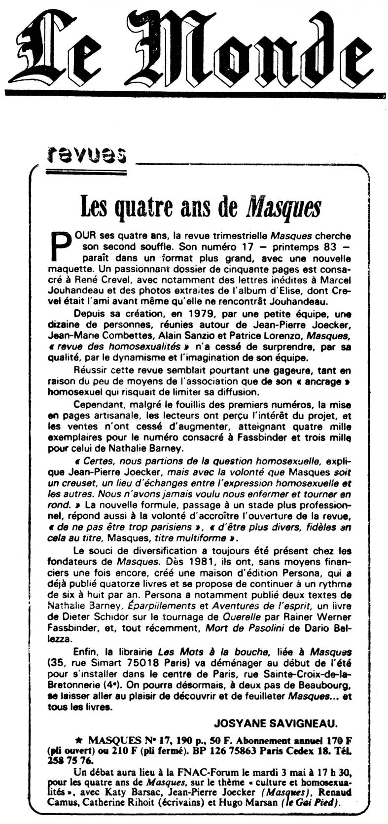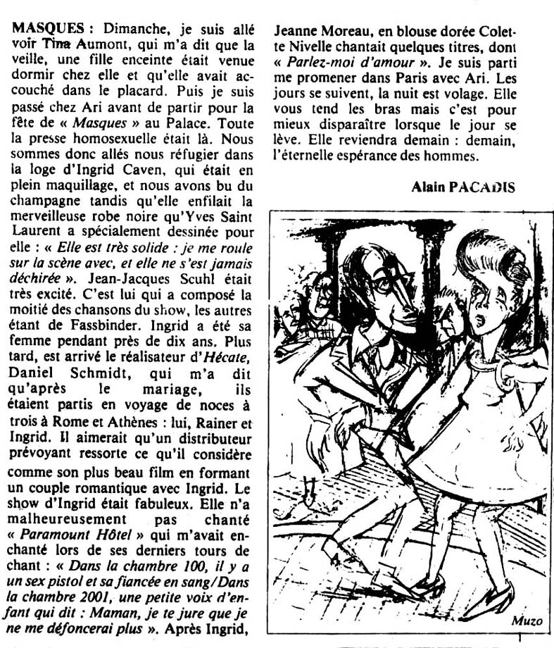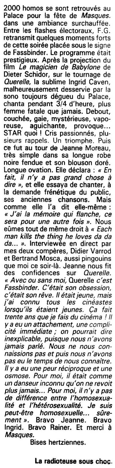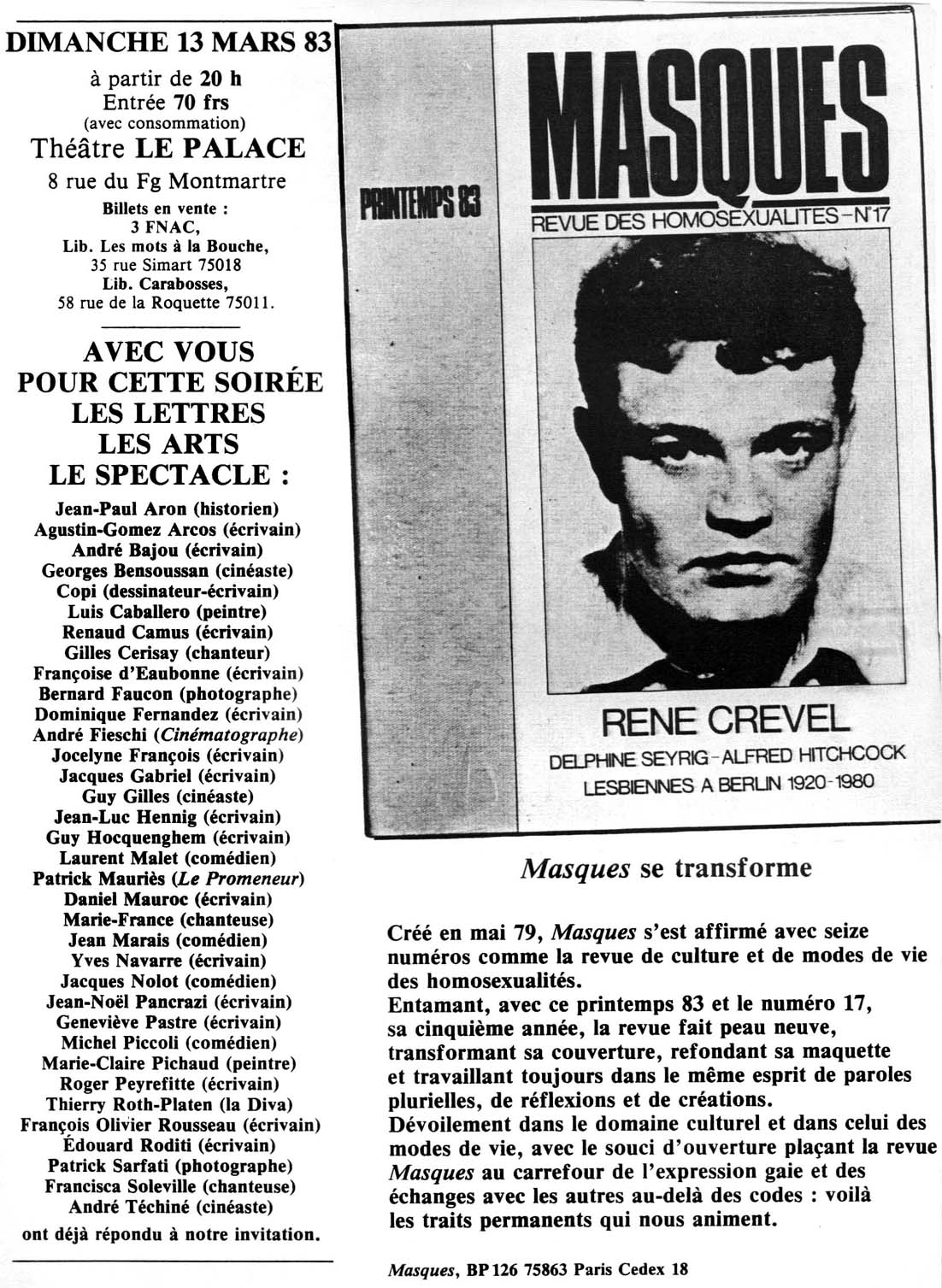 La Revue Masques - La fête au Palace 23 mars 1983 -