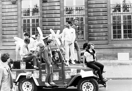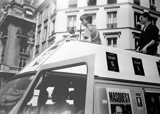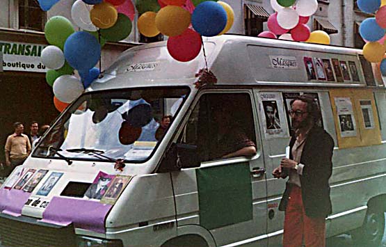 Le véhicule Masques Persona ( sur le toit : Jean Pierre Miralès et Alain Dubar)
