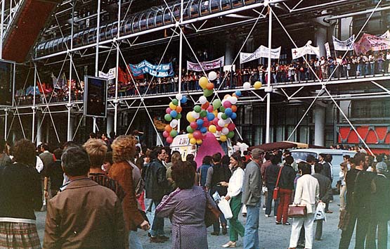De nombreuses banderoles sont accrochées au centre Pompidou.