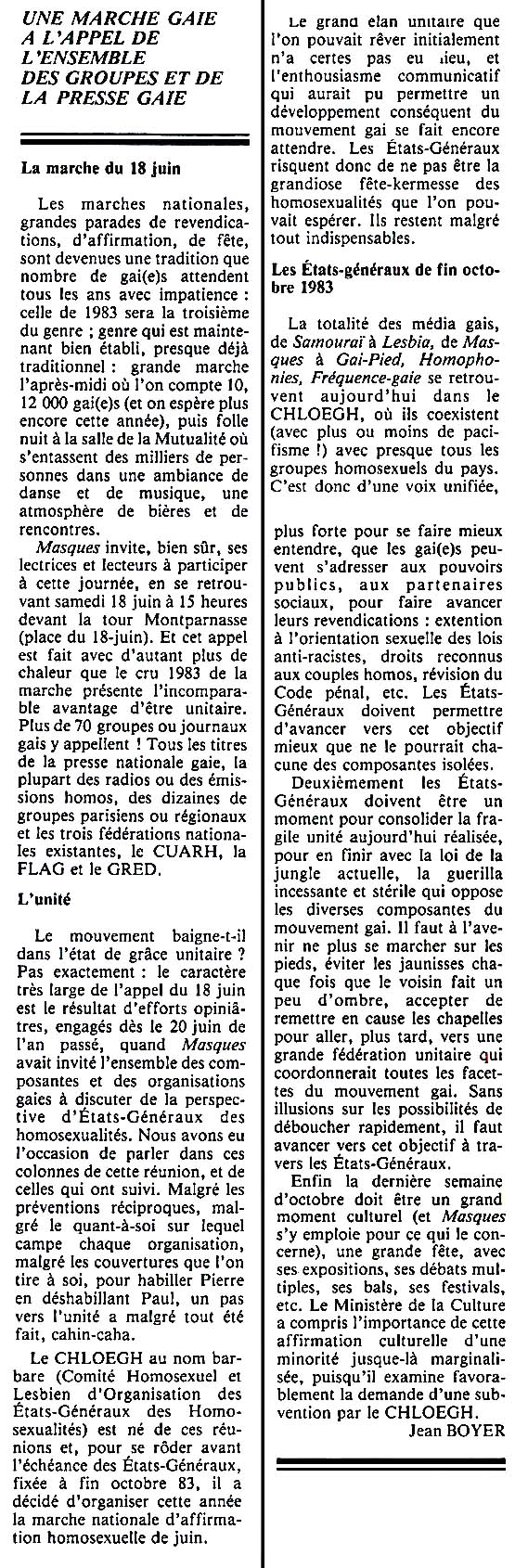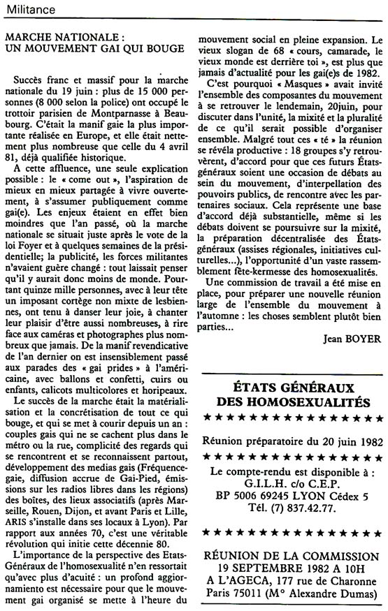 Masques (N°15- Automne 82) appelle à des Etats Généraux de l’homosexualité après le succès de la marche du 19 juin 82