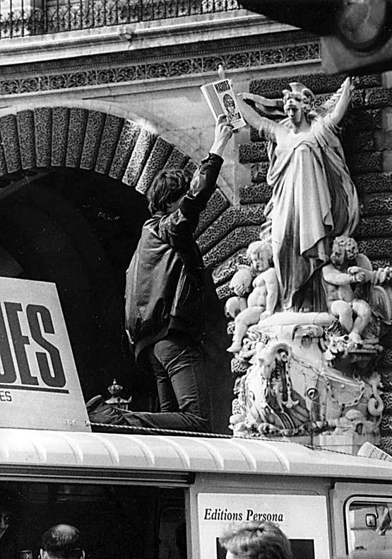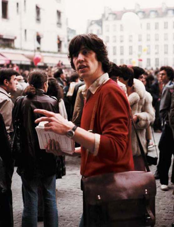 Jean Pierre Joecker vendant Masques dans la manifestation.