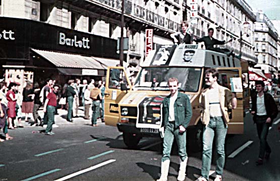 Le véhicule de Masques ( sur le toit : G Vincent, devant : JP Joecker et JP Mirales)