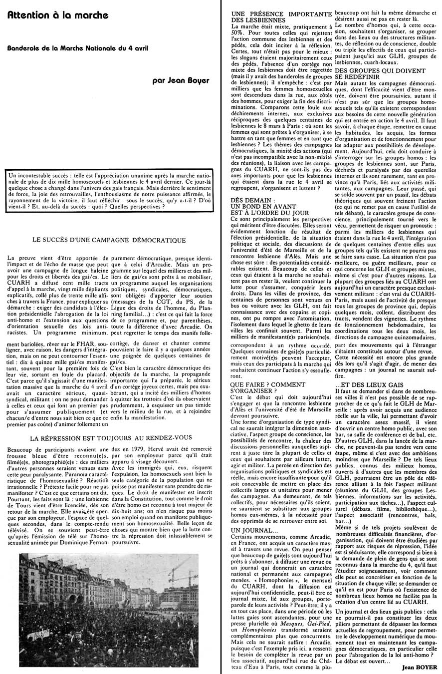 Jean Boyer lance l’idée d’une marche nationale dans Masques N°3 (hiver79-80).