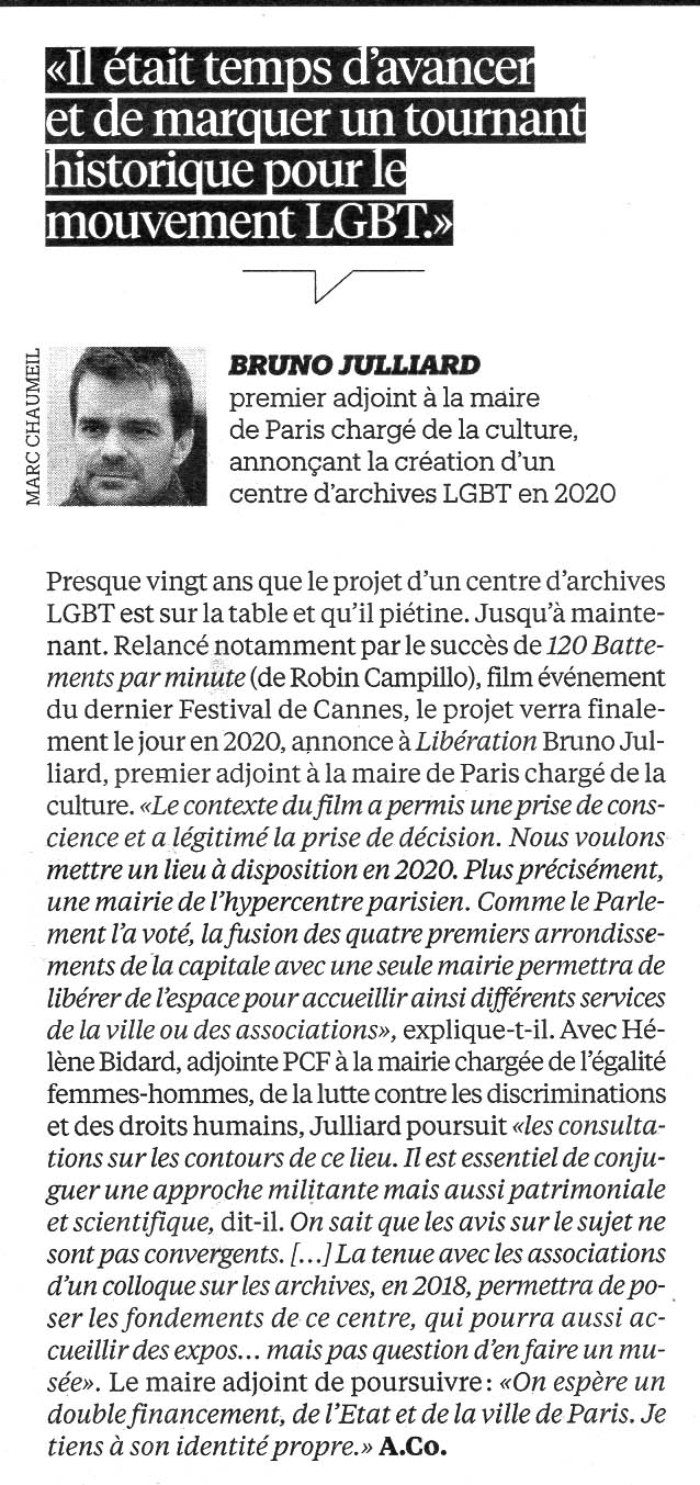 * 9 septembre : Philippe Artières revient dans Libération sur la question du centre d'archives LGBT. |