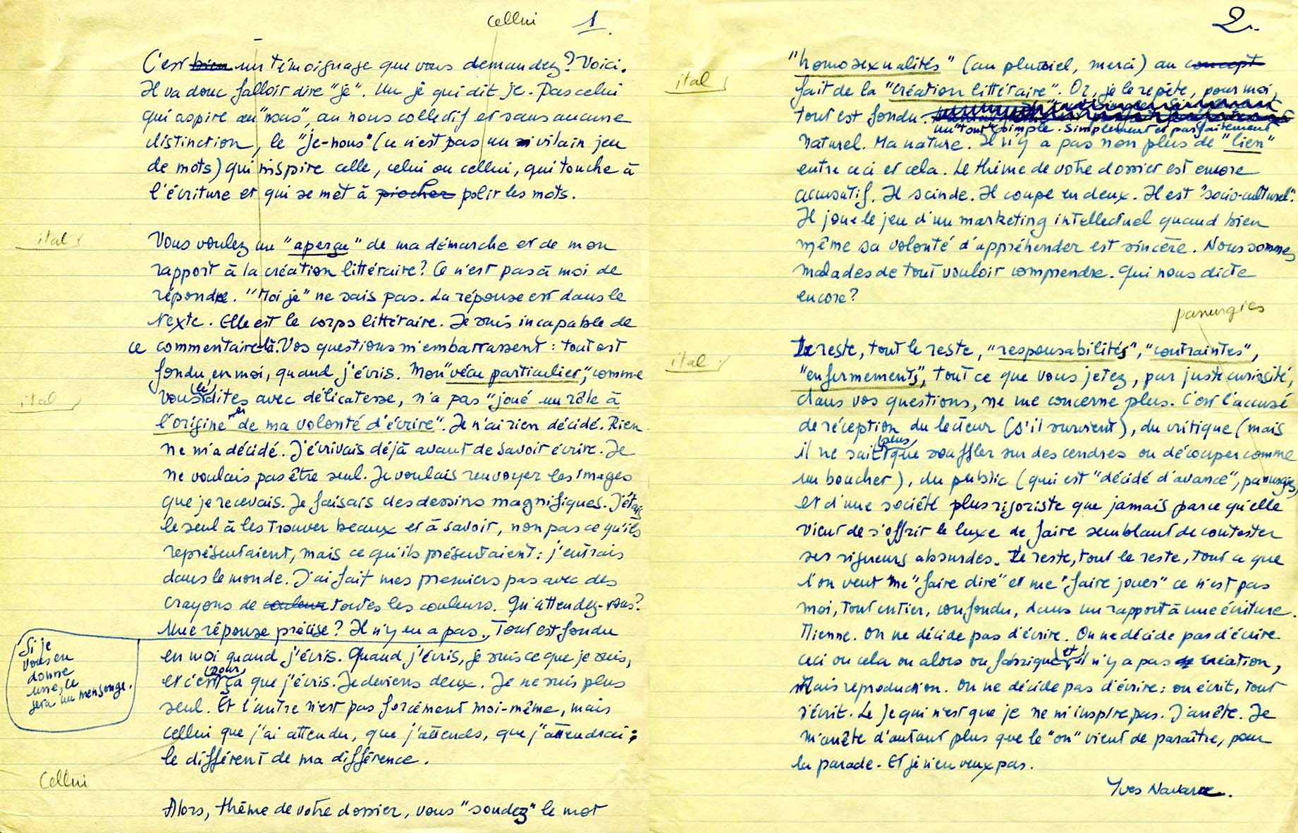 Création littéraire par Yves Navarre PRIX GONCOURT 1980