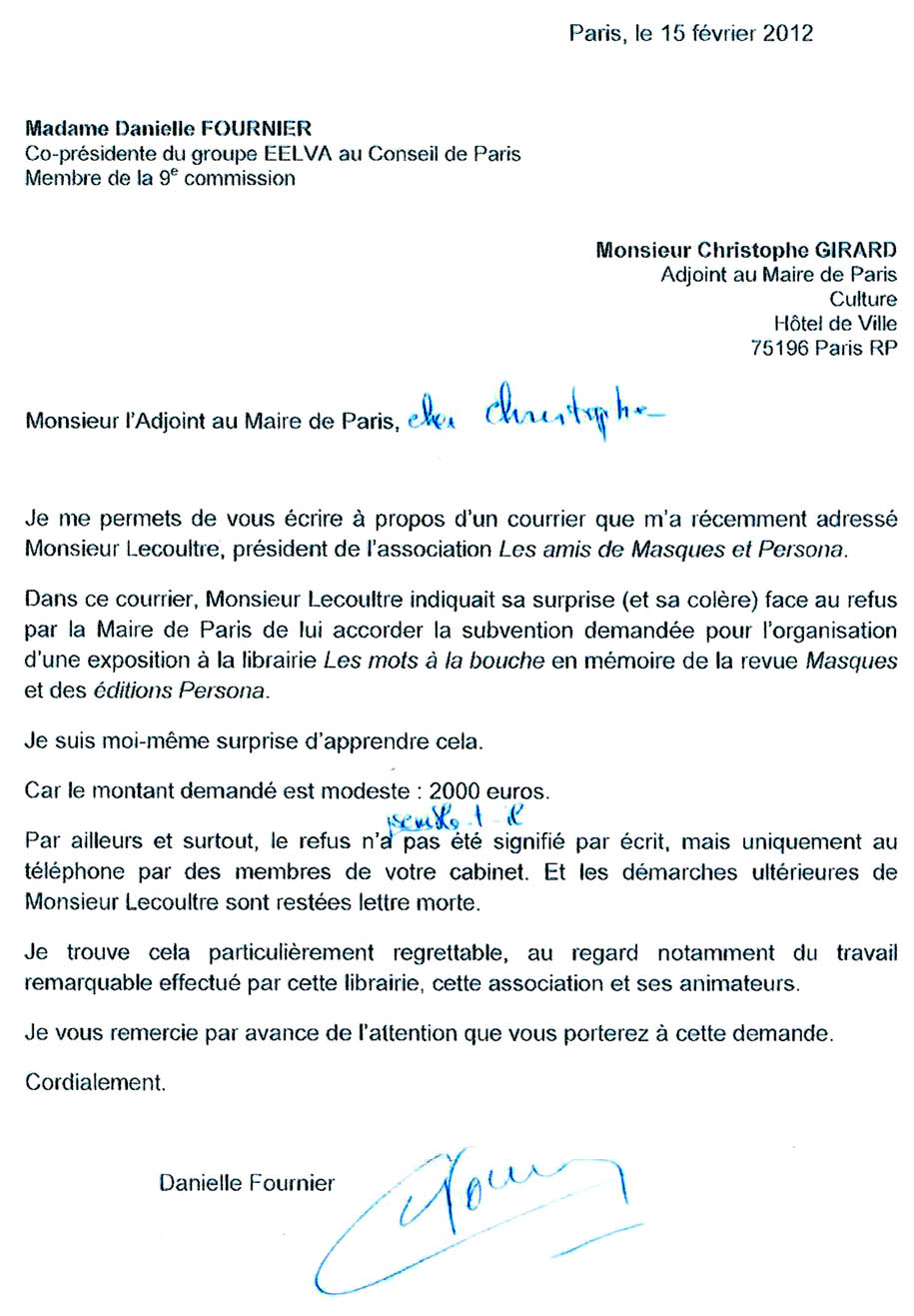 Lettre de la Co-Présidente, Danielle Fournier, des élus verts EELVA