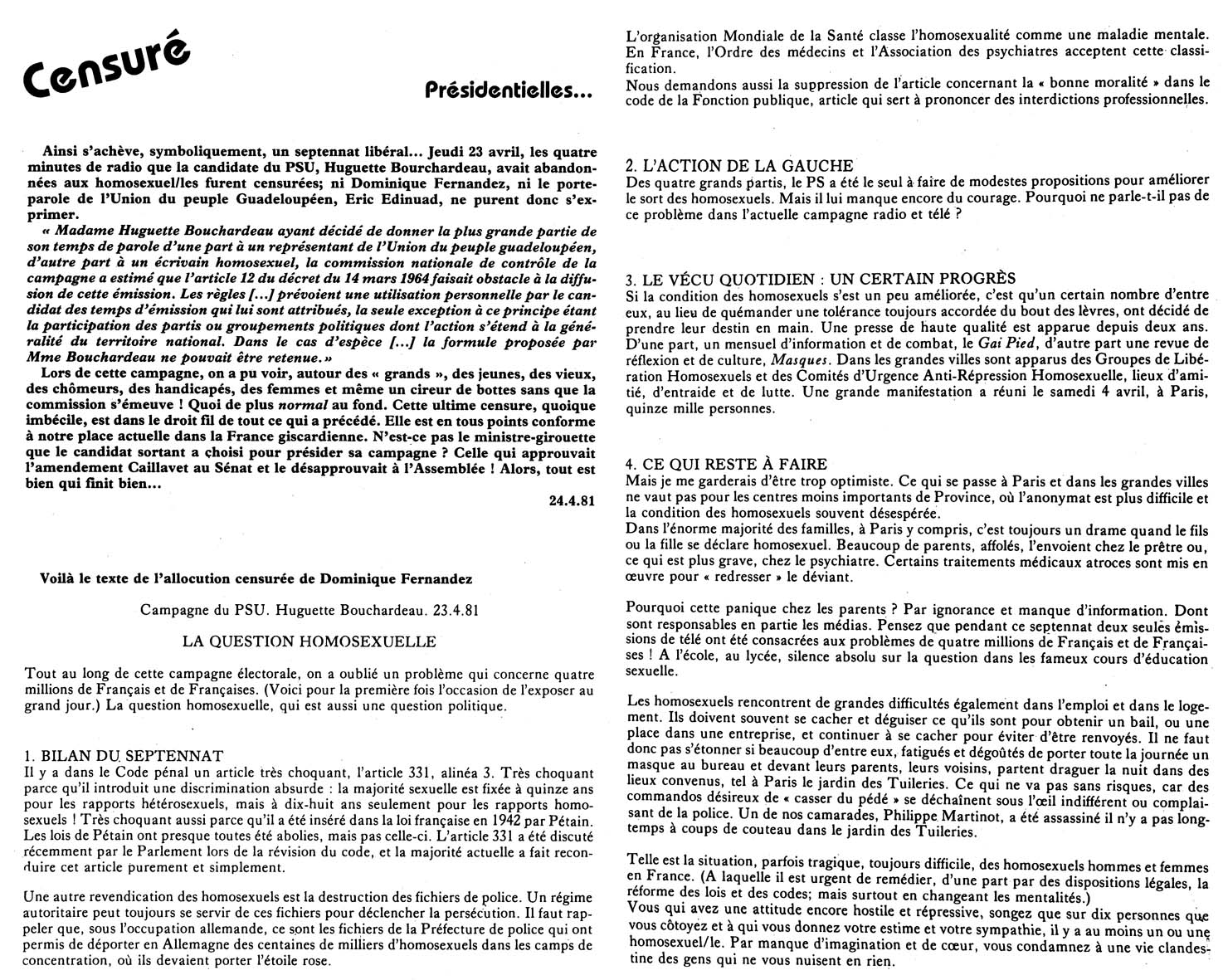 -Doc 17 : 9 juin 81 Conférence de presse Masques et Gai Pied pour présenter la pétition.