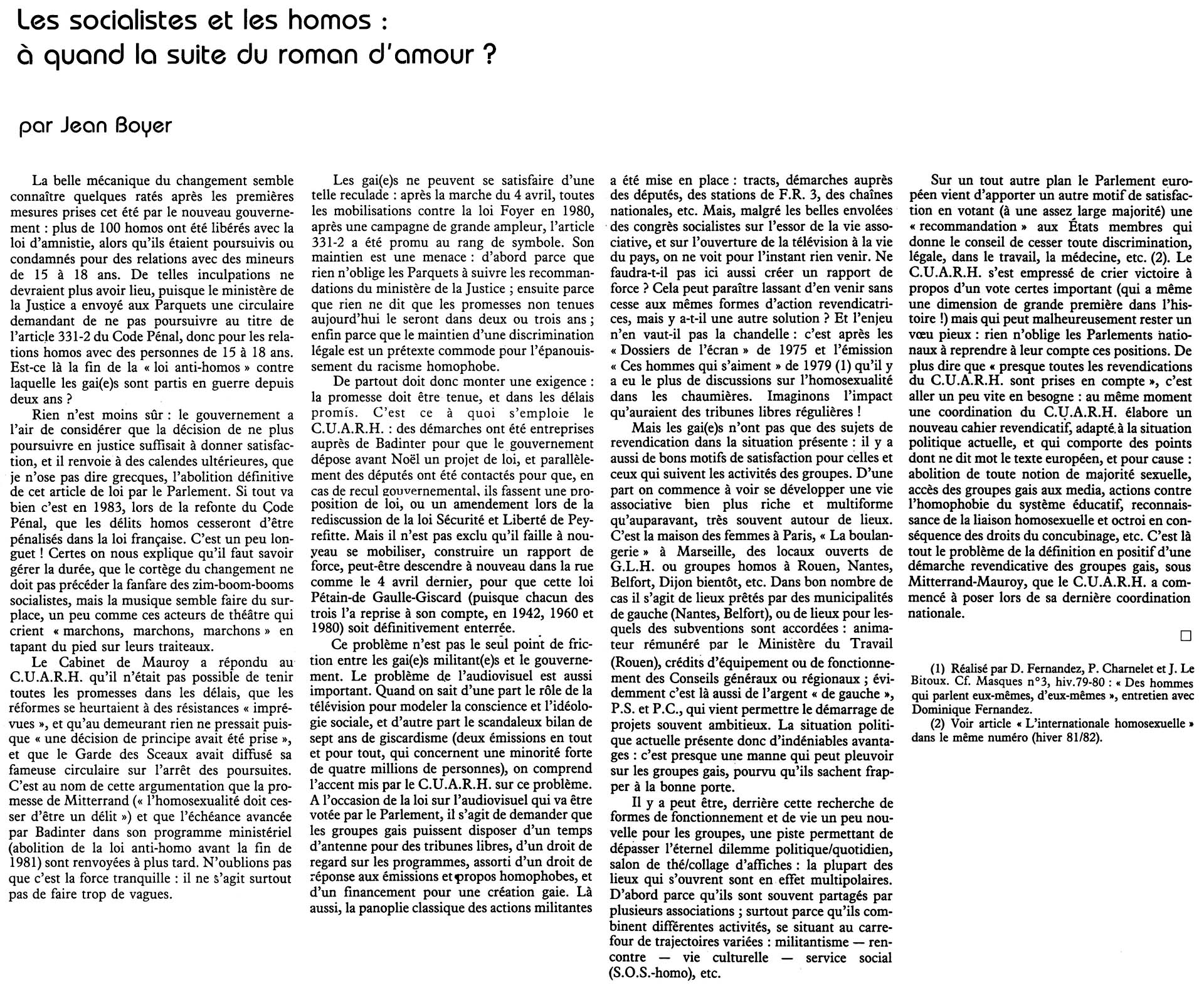 -Doc 21 : Article de J Boyer « les socialistes et les homos » Masques N°12