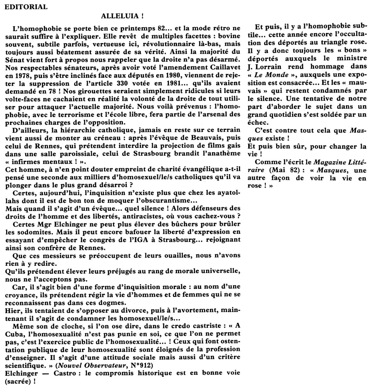 -Doc 25 : Editorial du N° 14 de Masques (été 82) Alleluia !