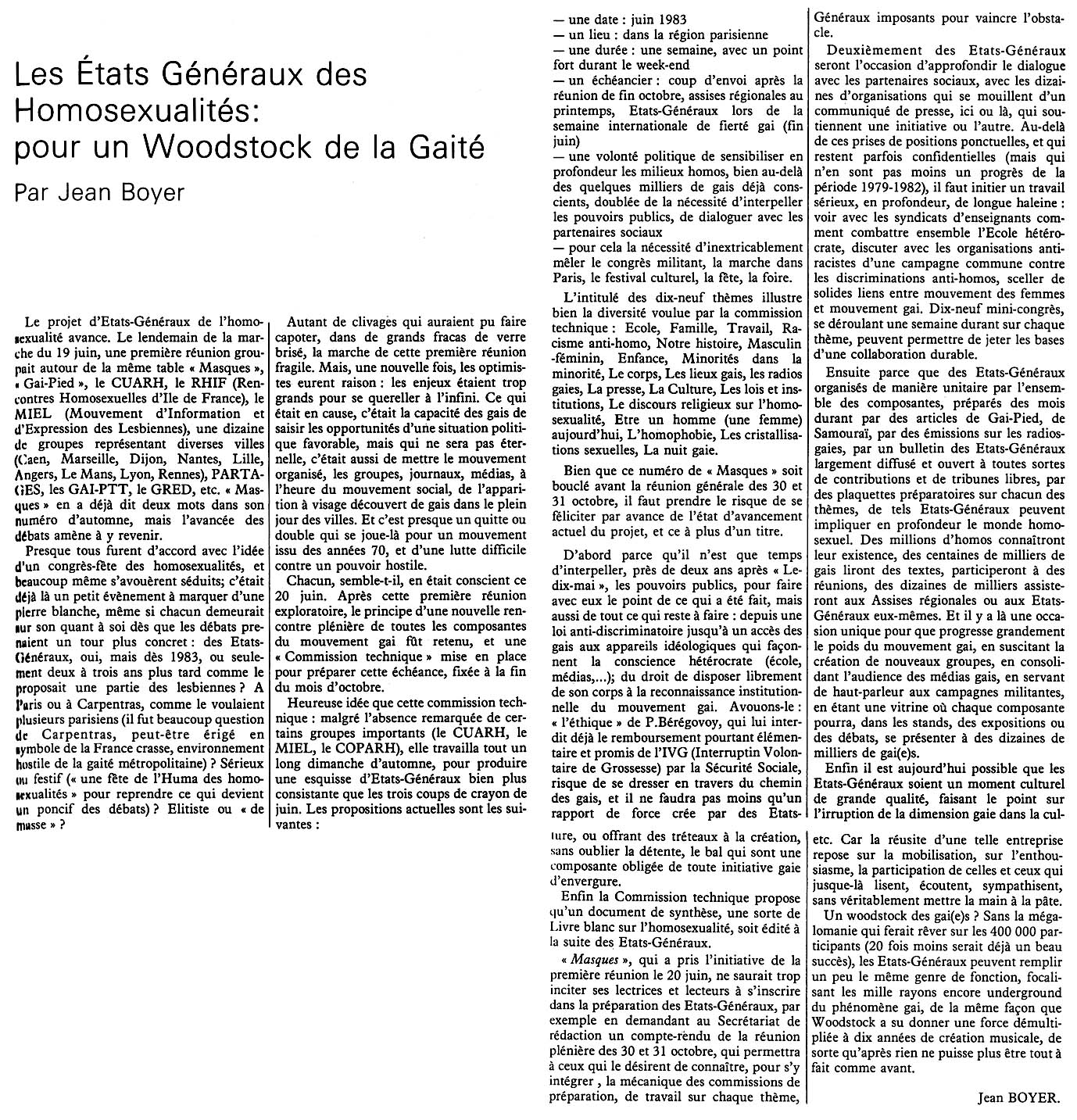 -Doc 29 : Pour des Etats Généraux des homosexualités. Article de J Boyer, Masques N°16