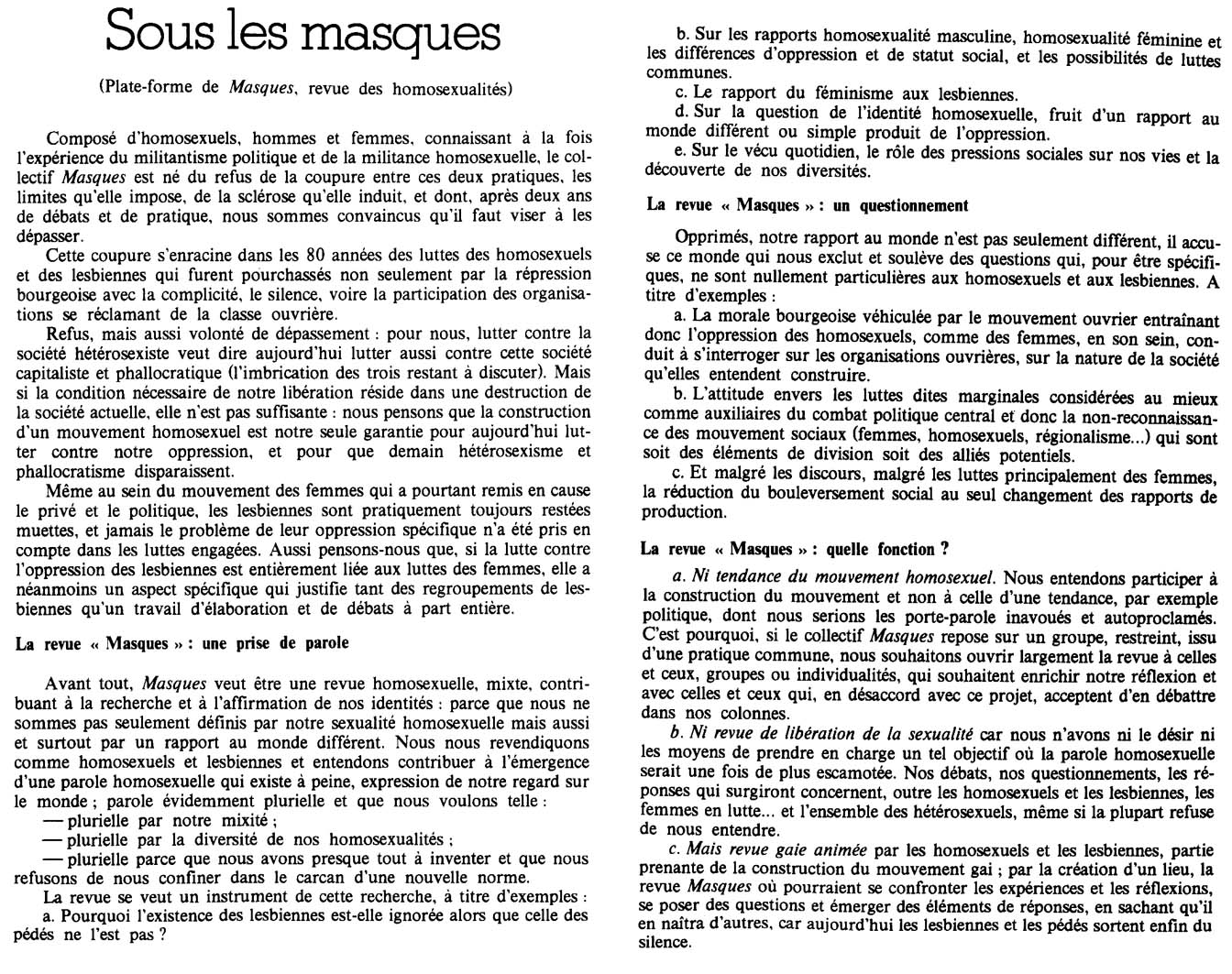 -Doc 03 : Plate forme de la revue publiée dans Masques N° 1(mai 1979)