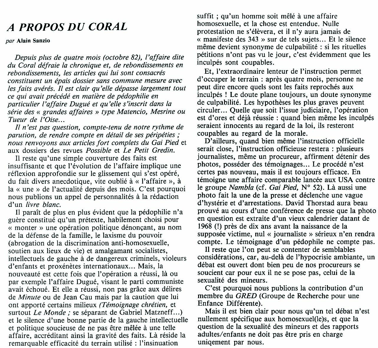 -Doc 31 : A propos du Coral. Article d’A Sanzio. Masques N° 17 (printemps 1983)