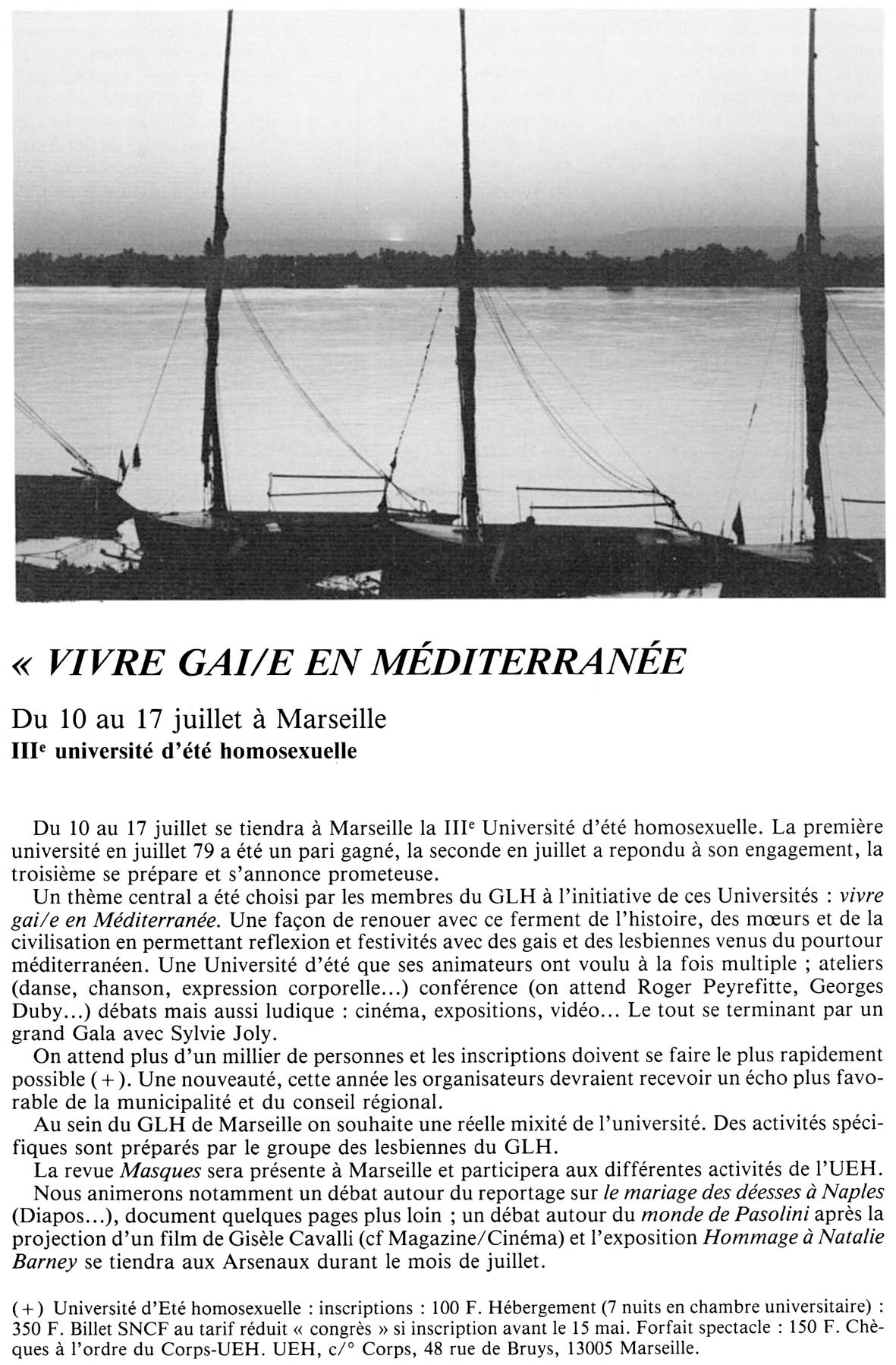 -Doc 33 : Appel à la III° Université d’été homosexuelle. Masques N° 18 (été83)