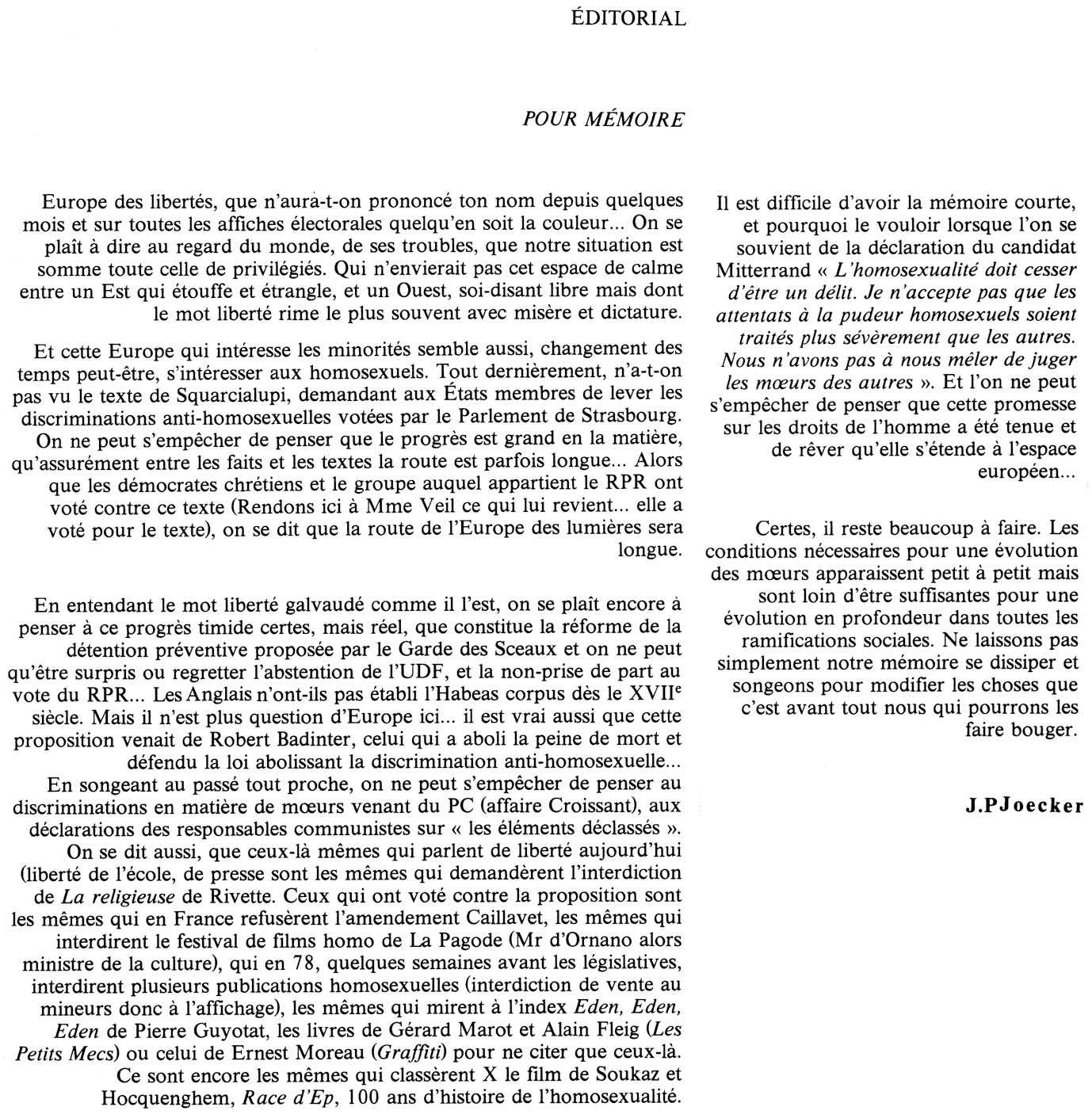 -Doc 34 : Editorial sur les élections européennes. Masques N° 22 (été 1984)