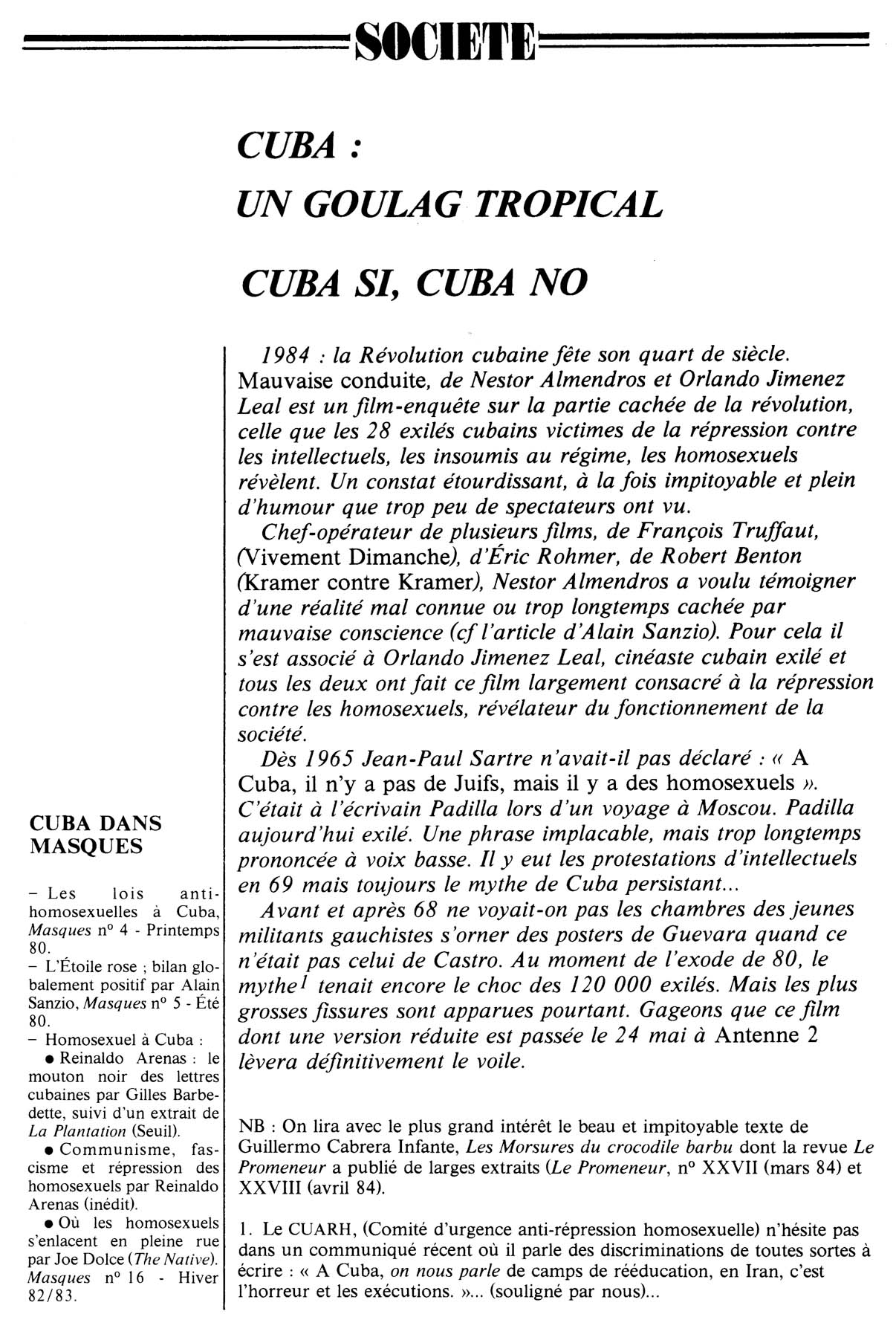-Doc 35 : Cuba, un Goulag tropical. Article ( p 87) dans Masques N° 22 p87