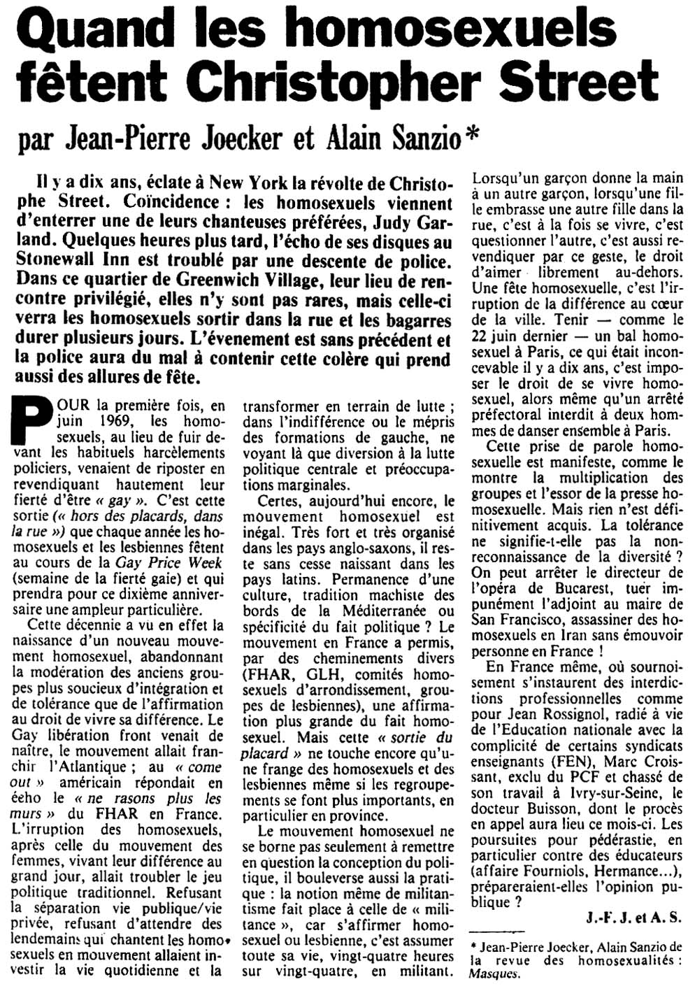 des Marches gaies traitées dans un autre lien, que ce soit dans la revue ou dans d’autres journaux.