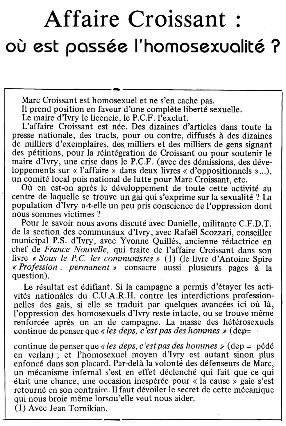 -Doc 09 : A propos de l’affaire Marc Croissant. Masques N°5 été 80 p 45