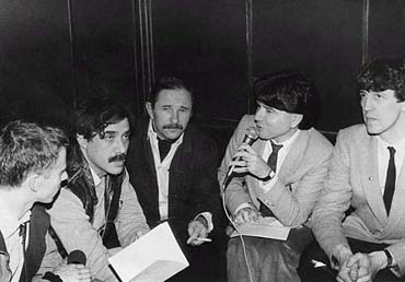 Emission de Fréquence Gaie, au Palace en février 1982. De G à D : Audrey Coz, Luis Caballero, Conrad Detrez, Hugo Marsan et Jean Pierre Joecker. |