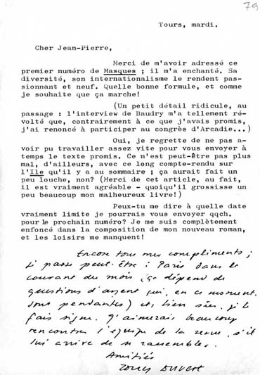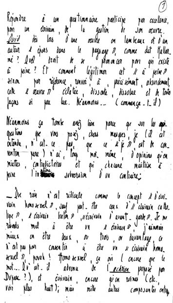 Réponse manuscrite de Renaud Camus au questionnaire de Masques N°7 (1980) |
