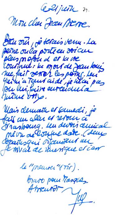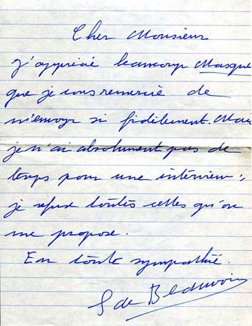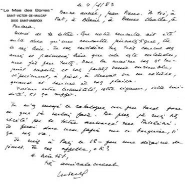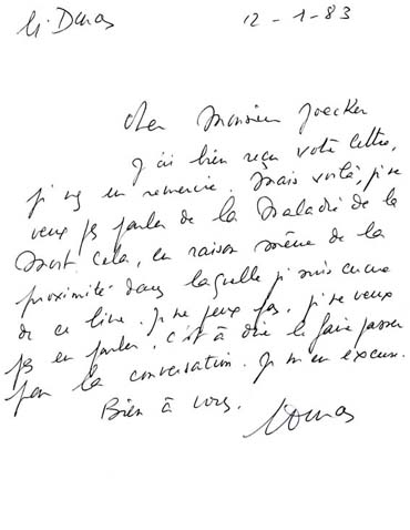 Lettre de Marguerite Duras du 12 janvier 1983 |