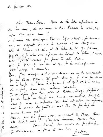 Lettre de Jocelyne François du 20 janvier 1983 |